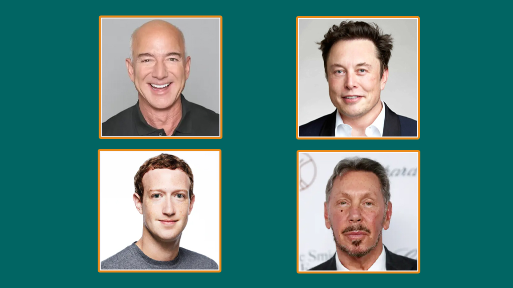 সম্প্রতি ব্লুমবার্গ বিলিয়নিয়ারস ইনডেক্স এবং অন্যান্য সংবাদমাধ্যমের তথ্য অনুযায়ী, বিশ্বের সবচেয়ে ধনী ব্যক্তিদের তালিকায় শীর্ষে রয়েছেন ইলন মাস্ক (টেসলা, স্পেসএক্স), ল্যারি এলিসন (ওরাকল), মার্ক জাকারবার্গ (মেটা) ও জেফ বেজোস (অ্যামাজন)। অবশ্য এই তালিকায়, বিশেষ করে প্রথম দুটি স্থানে, প্রায়ই পরিবর্তন দেখা যায়।